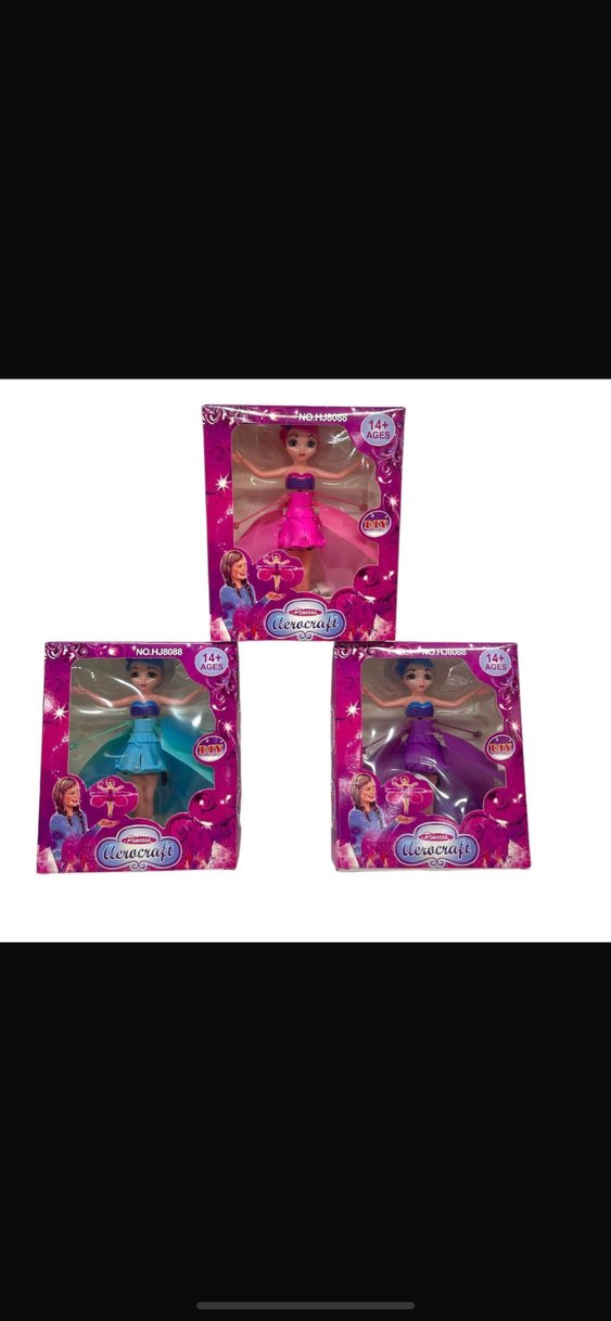 Canlı pembe, mavi ve mor elbiseli bebekler, 14 yaş ve üzeri için uygun. Her biri süslü kutuda.
