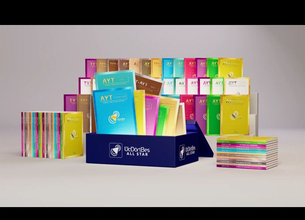 ÜçDörtBeş All Star seti, renkli kapaklı AYT ve TYT sınav hazırlık kitaplarını içerir, kapsamlı çalışma için uygundur. Güncel fiyatı 32 bin tldir