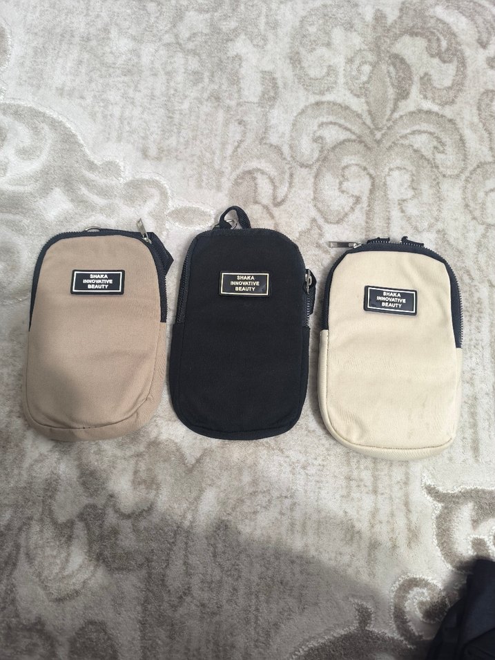 Bej, siyah ve krem renklerde, sade tasarımlı üçlü minimal kadın çapraz çanta seti. Fermuarlı ve günlük kullanım için uygun.