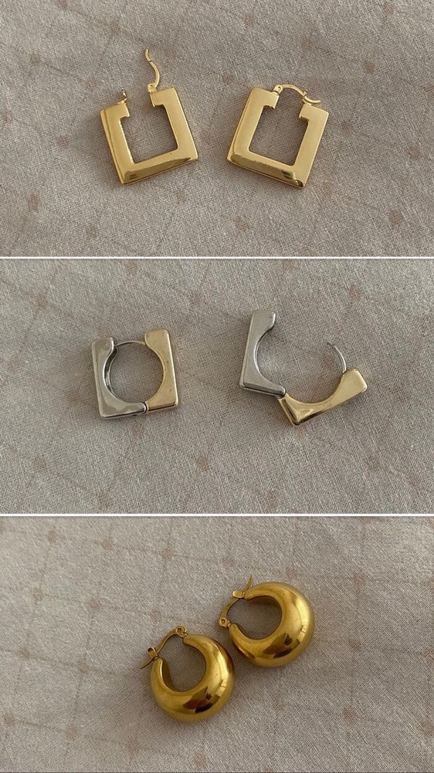 Parlak altın renkli, tokalı midi küpeler. Minimalist ve çağdaş tasarıma sahip, günlük kullanıma uygun şık aksesuarlar. ✨