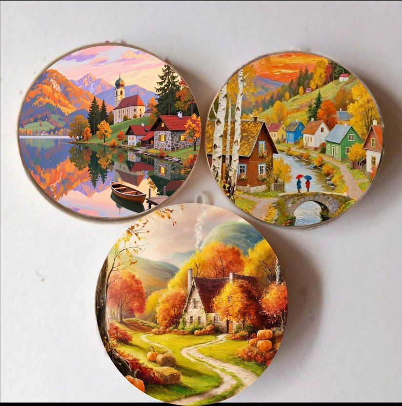 Doğanın Renkleri Duvarınızda! Evinize sonbaharın sıcaklığını ve masalsı bir huzuru taşımaya ne dersiniz? 13 cm çapındaki bu üçlü el emeği duvar tabağı seti, pastel tonları ve huzur veren doğa manzaralarıyla dekorasyonunuzun en sevilen parçası olacak. Ölçü: 13 cm (Her bir tabak) İçerik: 3 Adet Duvar Tabağı Kullanım: Arkasındaki askı aparatıyla kolayca asılabilir veya dekoratif stantlarla kullanılabilir