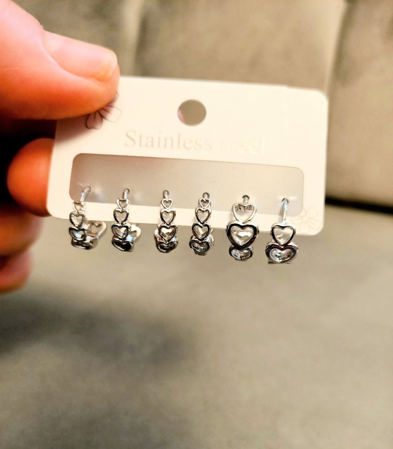 Paslanmaz çelikten, mini kısa boyda, kalp desenli küpe seti. Günlük kullanıma uygun minimal tasarım ❤️#çelik #çelikküpe #aksesuar #küpe #kalpküpe