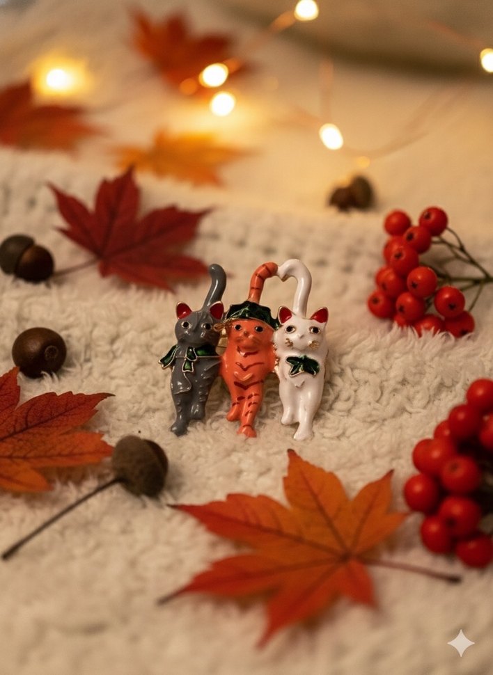 Üçlü kedi arkadaşlar Broş