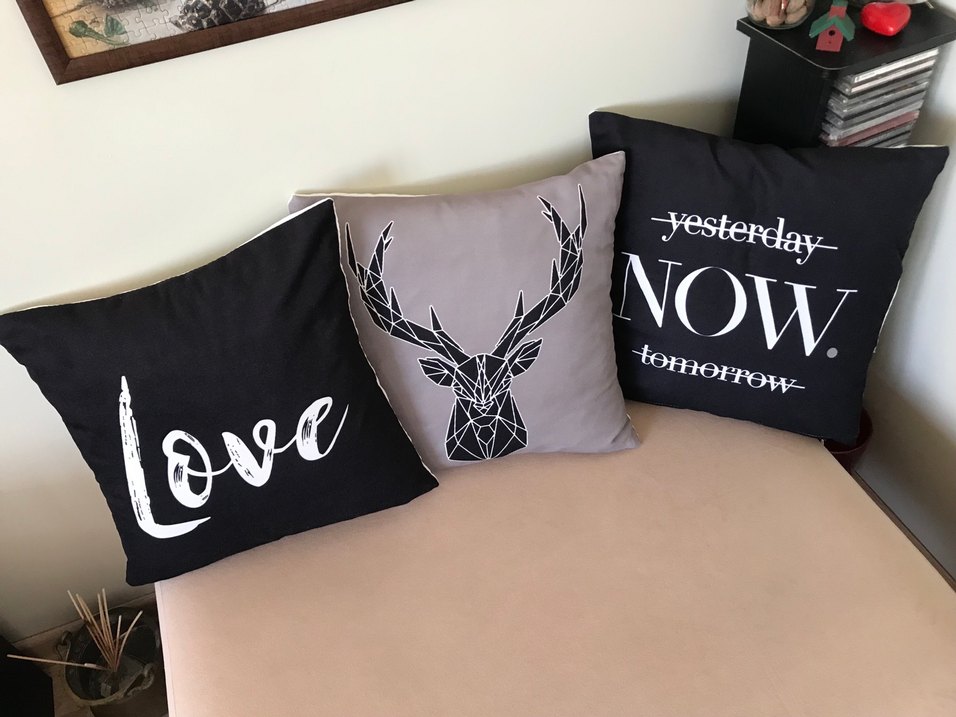 44x44 birbirini tamamlayan üçlü dizayn. Arka pamuklu ön leke tutmayan özel kumaş. Sadece kılıflar ve üçlü satıştadır. İç- dış problemsiz.