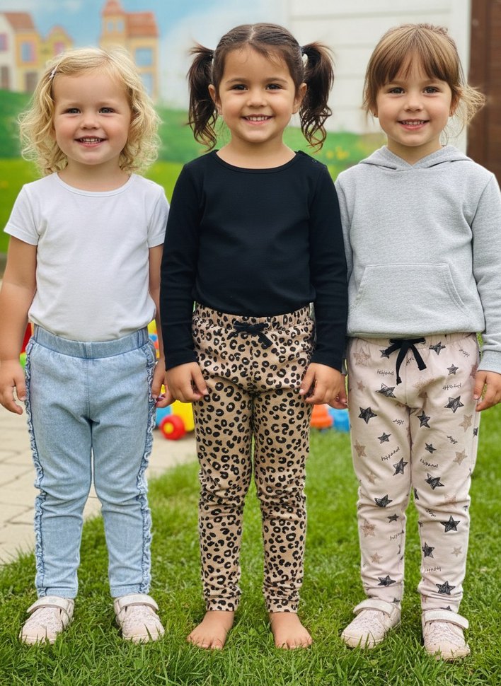 4-5 yaş üçlü pantolon,ikisi LCW,mavi kot görünümlü olan riverislant marka, mavinin alt taraflarında renk farklılığı var,aldığımda öyleydi ama hiç kullanılmadı,diğer ikside sorunsuzlar.