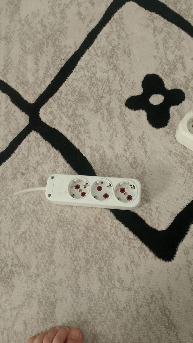 Üç prizli beyaz uzatma kablosuz, birden fazla cihaz bağlamak için uygundur. ⚡