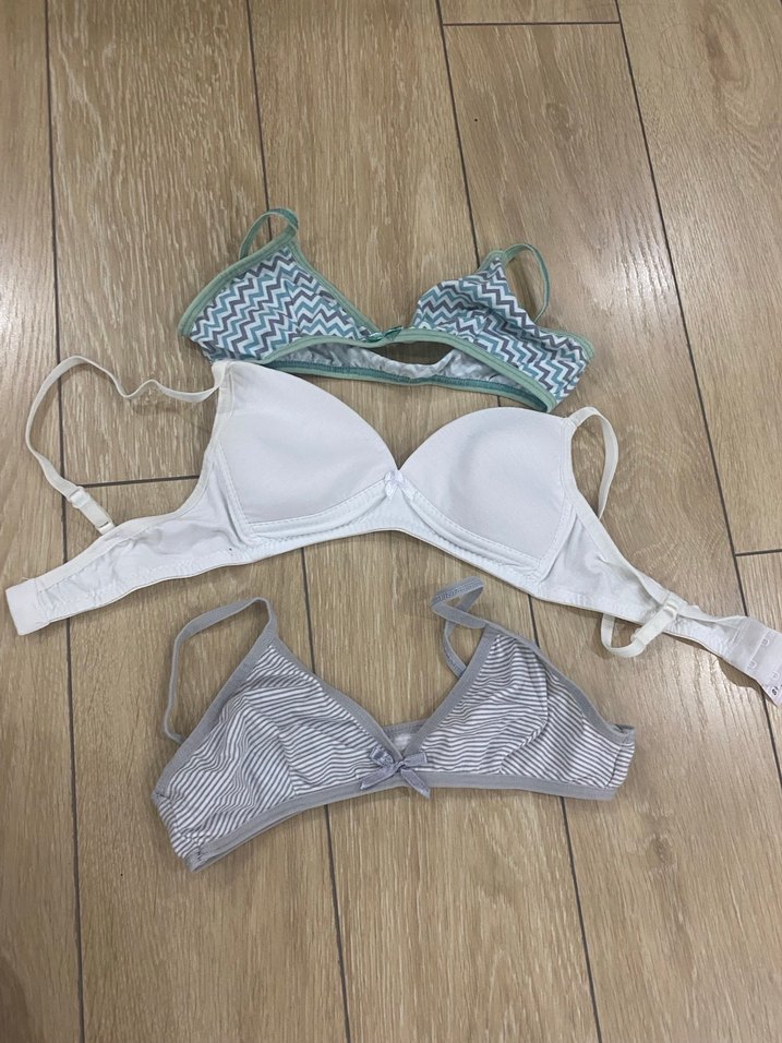 beyaz düz ve gri desenli üçlü sütyen seti. Normal uzunlukta askılarıyla rahat ve çok yönlü kullanım sağlar. Çeşitli renk ve desenlerde 3 adet sütyen seti. Günlük kullanım için ideal. Genç kızlar içindir. 14-15 yaş uyumludur. Alana hayırlı olsun şimdiden.