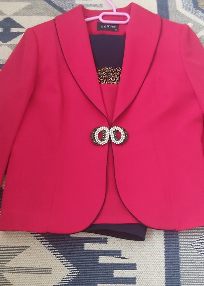 Üçlü takım elbise sıfır ayarında hiç bir defosu yok çok şık tam özel günler için içi sıfır kollu eteği kalem etek lacivert renk takım kırmızı renginde üzeri boncuk işlemeli #cemre marka 42 beden