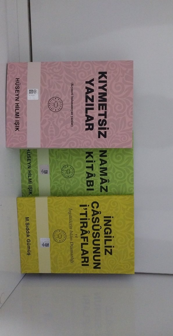 Hüseyin Hilmi Işık ve M. Siddik Gümüş imzalı, değersiz yazılar, namaz ve İngiliz casusunun itiraflarını içeren üç yabancı dil kitap seti.
