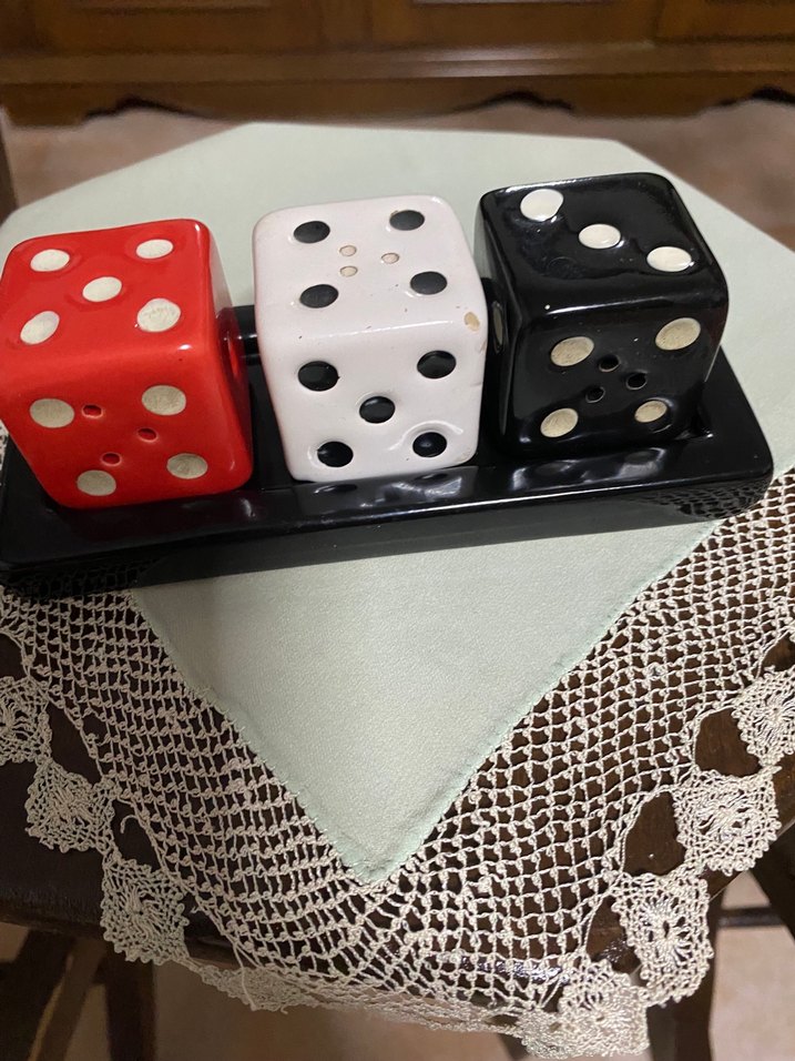 Üçlü Zar şeklinde Siyah-Beyaz-Kırmızı renklerde tuzluk biberlik