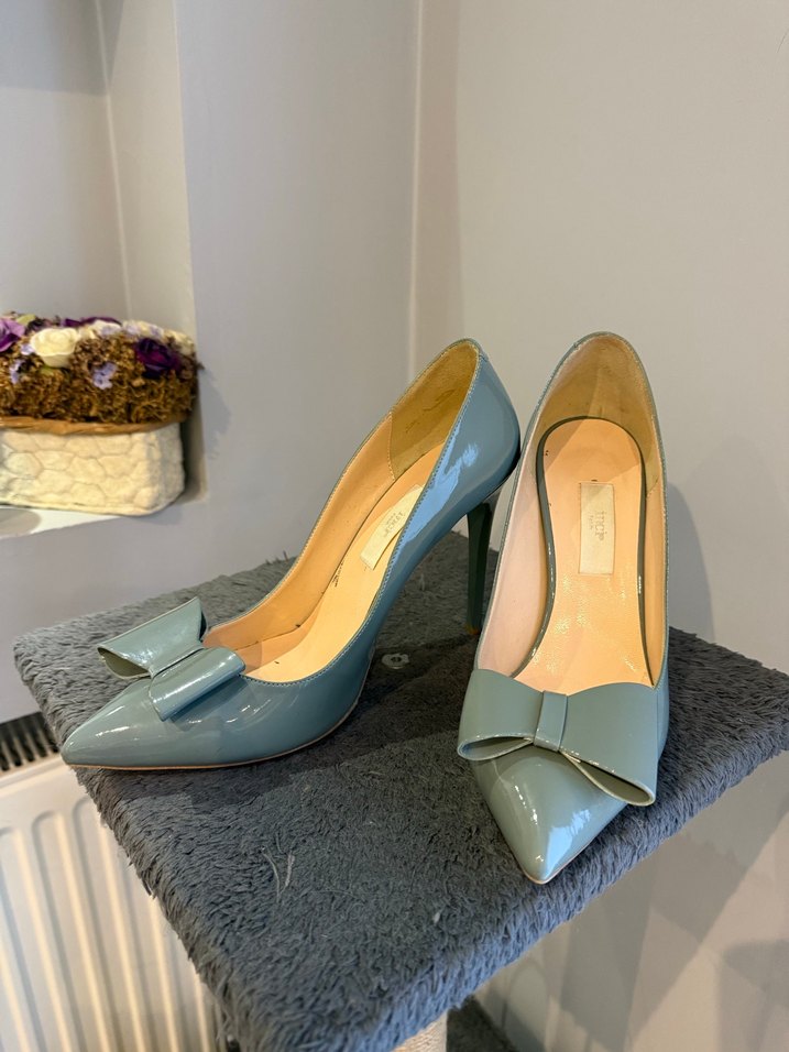 Uçuk yeşil griye bakan Parlak Rugan İnce Topuklu Kadın Ayakkabı