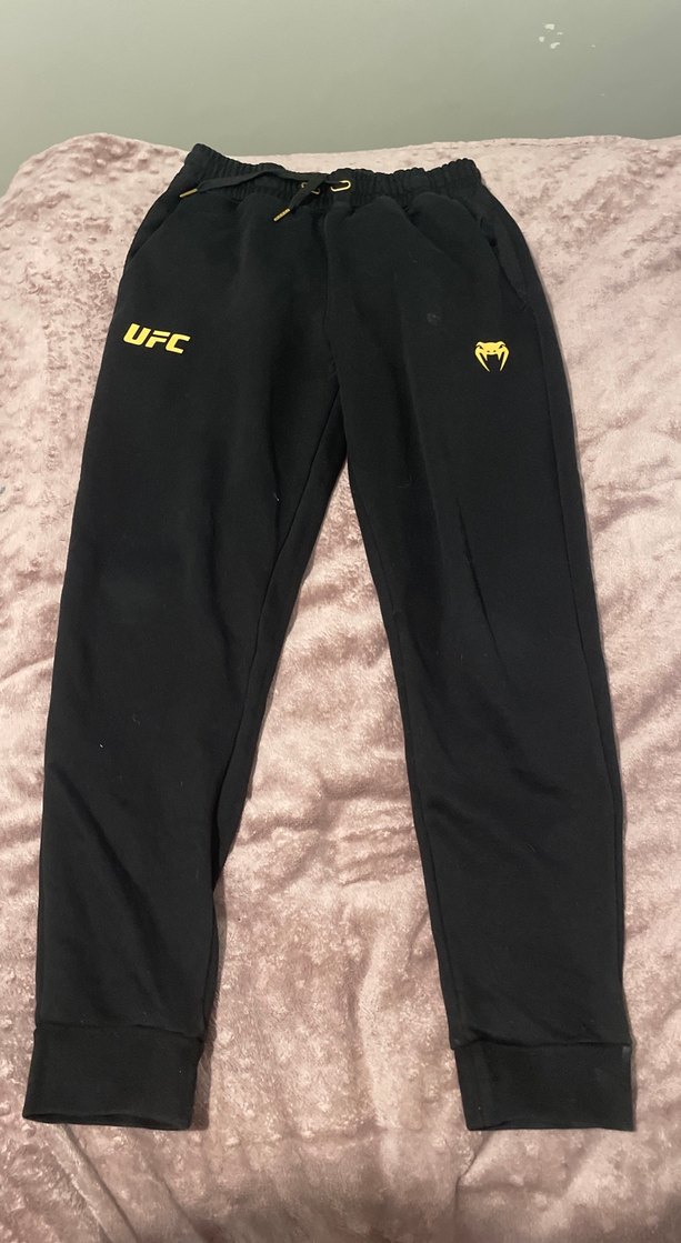 Siyah, bol kesim erkek sweatpant, UFC logosu ve Velcro detaylarıyla yumuşak ve sıcak kumaştan üretilmiştir. Spor ve günlük kullanım için uygundur. ️♂️