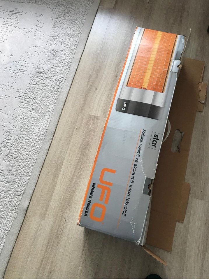 UFO Star infrared ısıtıcı, turuncu ve gri renklerde, gelişmiş infrared teknolojisi ile etkili ısıtma sağlar.