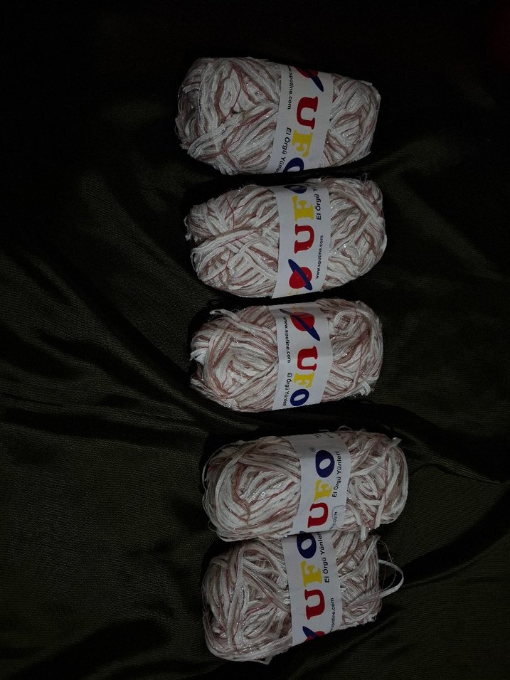 Yumuşak dokulu Ufo Uno el işi ipinden 5 top, çeşitli el sanatları için uygundur.