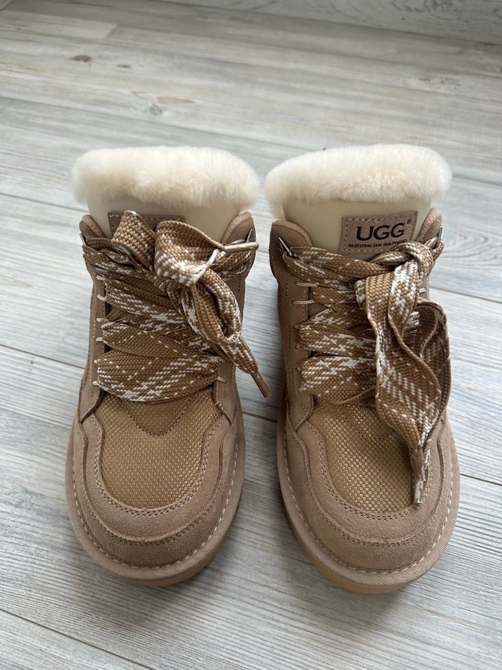 UGG markalı, bej süet malzemeden yapılmış, kürk detaylı ve dolgu topuklu bot. Sokak tarzı ve rahat kullanıma uygun, pastel renk tonunda. Avustralya’dan alındı. Deri ve içindeki kürk kalitesi mükemmel.Orjinal ugg bot.