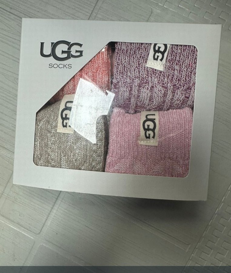 UGG markalı, pembe ve gri tonlarında, kısa boy kadın çorap seti. Rahat ve çağdaş tasarıma sahip.