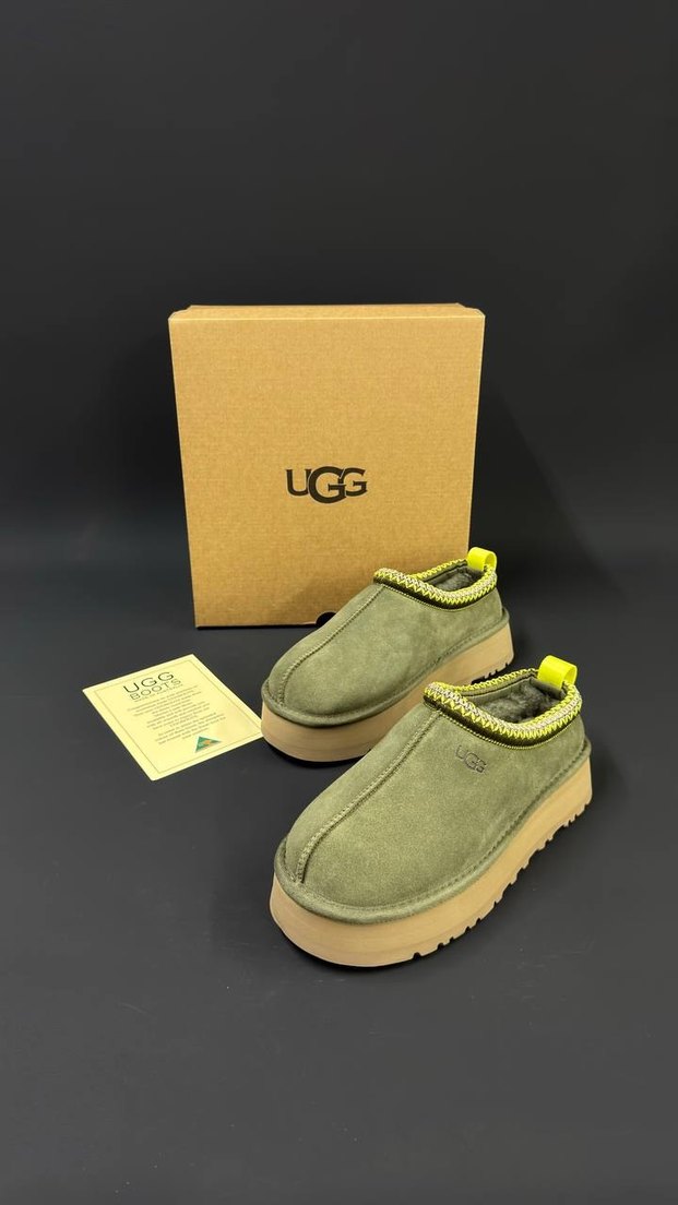 UGG kadın süet terlikler, dolgu topuklu ve trend rahat tarzıyla dikkat çekiyor. Haki rengi ve konforlu tasarımı günlük kullanıma uygun şıklık sunar.