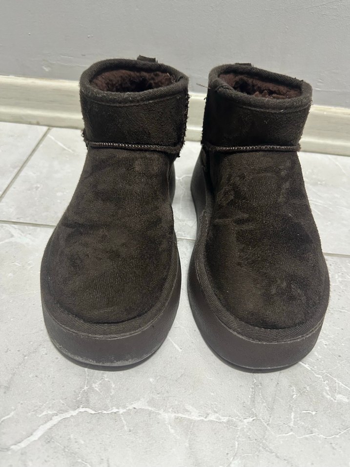 Ugg 36 beden Kahverengi kadın botları, kürklü iç detay ve dolgu topuklu.