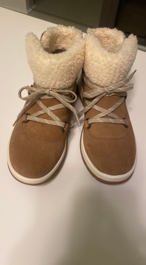 Bej süet kadın botları, dolgu topuklu ve kürk detaylıdır. Rahat ve şık dış mekan kullanımı için uygundur. Ürün hiç kullanılmamış olup %100 orijinaldir. Waterproof