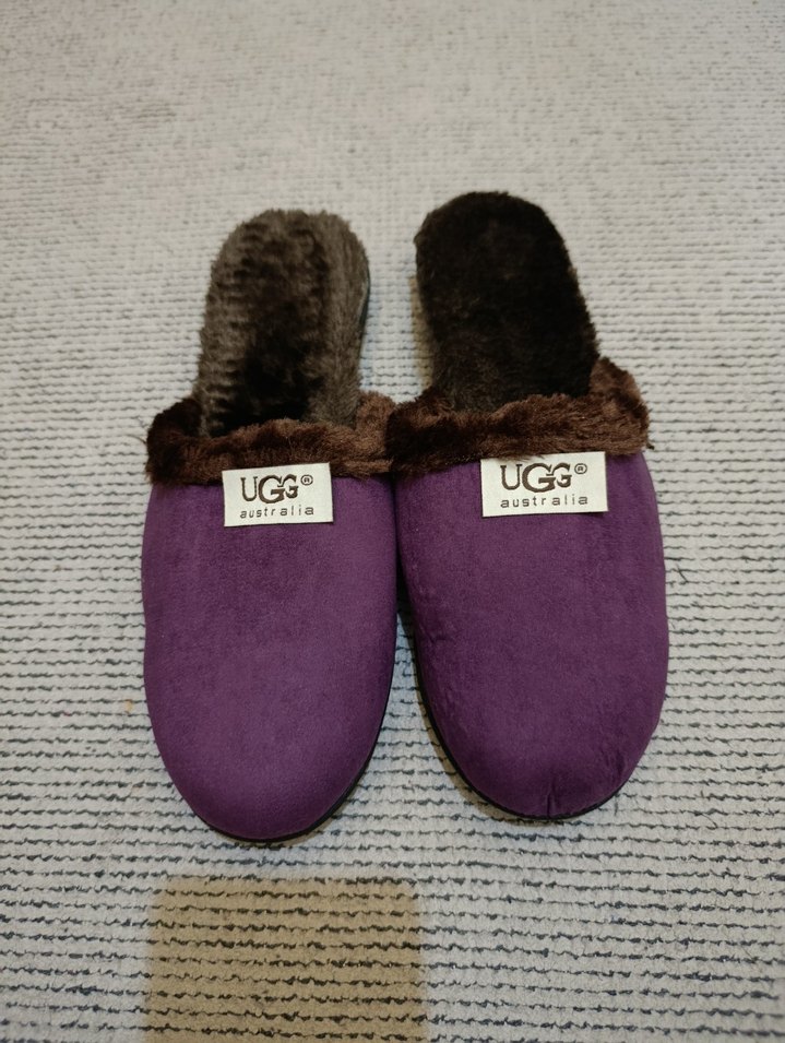 Mor renkli UGG kadın ev terliği, kama topuklu ve kürk detaylıdır. Yumuşak polar iç yüzeyiyle günlük kullanımda rahatlık sağlar.