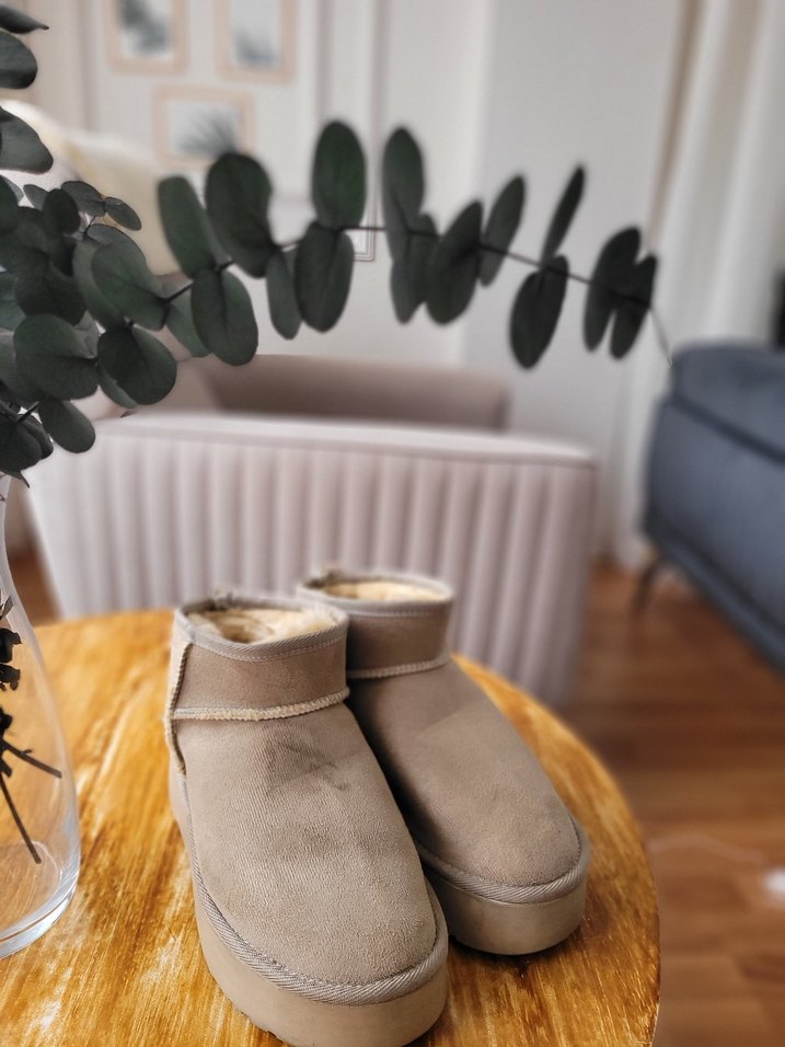 1 kez giydim büyük geldi satıyorum Bej süet kadın botları, kama topuklu ve kürk detaylıdır. Rahat ve gündelik kullanım için uygundur.