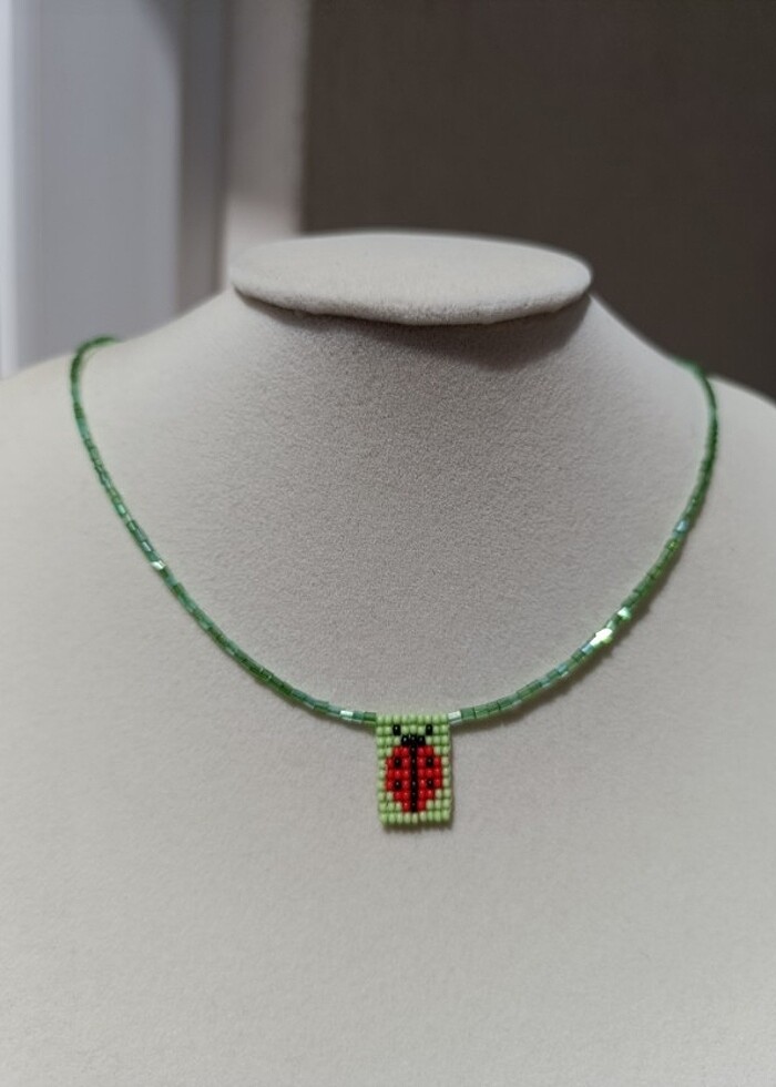 Işık vurduğunda gece gündüz farketmeksizin parlayan boncuklarla şık bir kolye