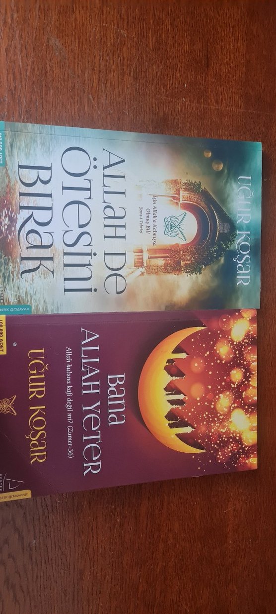 Uğur Koşar'ın dua ve inanç temalarını işleyen 'Allah De Ötesini Bırak' ve 'Bana Allah Yeter' kitapları. ✨
