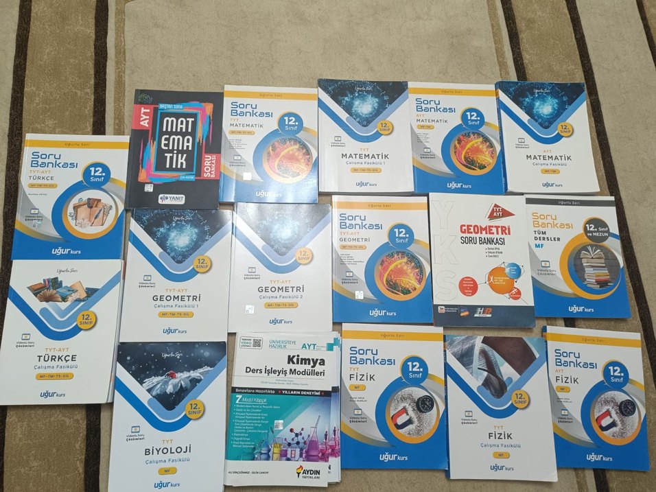 12. sınıf Matematik, Geometri, Türkçe, Fizik ve Kimya soru bankaları ile çalışma fasikülleri ve ders işleyiş modüllerinden oluşan 17 kitaplık set. sadece bir veya iki kitabın sadece İlk sayfası işaretli. geri kalanlar hiç maalesef hiç açılmadı bile