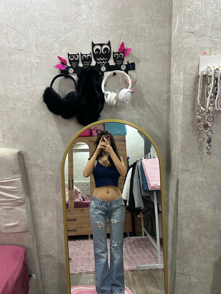 Ultra düşük bel denim jean açık mavi yırtmaçlı detaylı