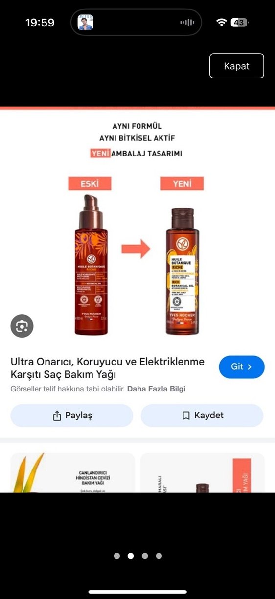 Aynı bitkisel aktif formülle ultra onarıcı, koruyucu ve elektriklenme karşıtı saç bakım yağı, yeni ambalaj tasarımıyla.