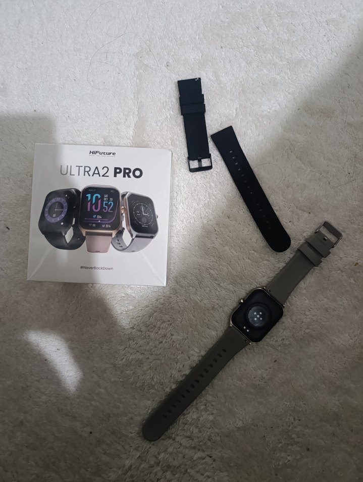 ULTRA2 PRO gri akıllı saat, canlı ekrana sahip olup ekstra siyah kayış ile birlikte gelir. Çok yönlü stil seçenekleri sunar. ⌚ ışıktan parladığı için düşük ışıkta ekran resmi çektim çok az kullanıldı herhangi bir defosu yok uyku saati kalori kalp atışı vs ölçümleri yapar