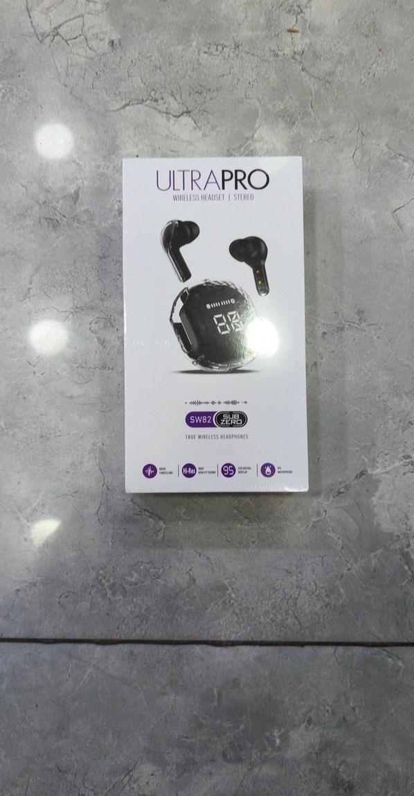 Ultrapro kablosuz siyah kulak içi kulaklık, dijital ekranlı şarj kutusuyla. Stereo ses ve konforlu ergonomik tasarım.