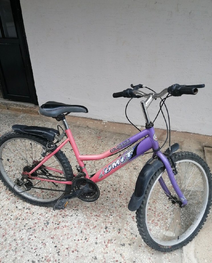 Mor ve pembe renkli çocuk bisikleti, rahat sele, sağlam lastikler ve ön-arka çamurluklarla donatılmıştır. Kolay kullanımlı gidon içerir. 21 vitestir.