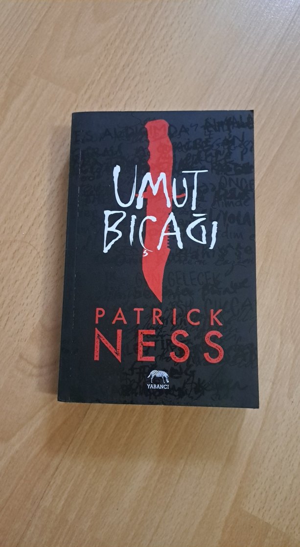 Patrick Ness'in "Umut Bıçağı" adlı romanı, Yabancı yayınevinden. Kapağında siyah zemin üzerinde kırmızı bir bıçak görseli var.