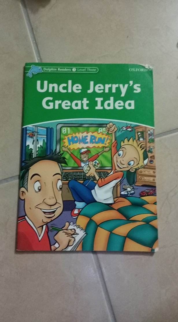 "Uncle Jerry'nin Harika Fikri" mizah kitabında, bir çocuk televizyonda home run kutlarken diğer adam not alıyor. Neşeli anlar içerir.