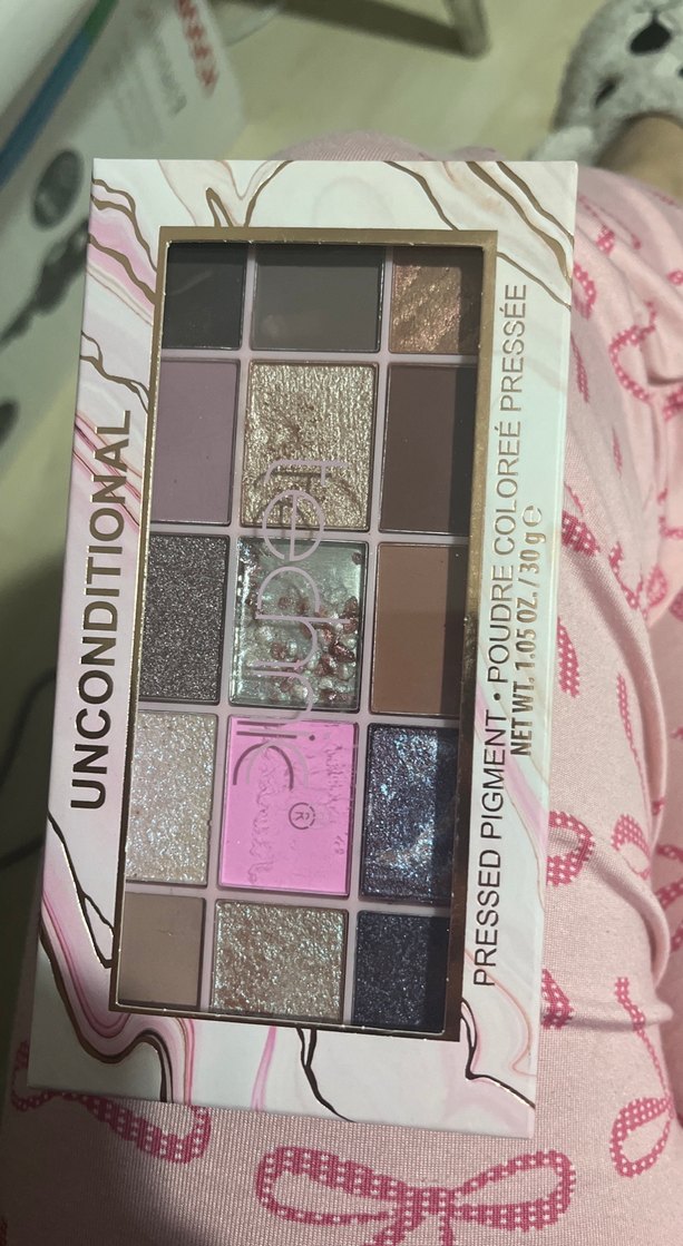 Unconditional göz farı paleti, mat ve ışıltılı finisli koyu ve bej tonlarda çeşitli renkler sunar.