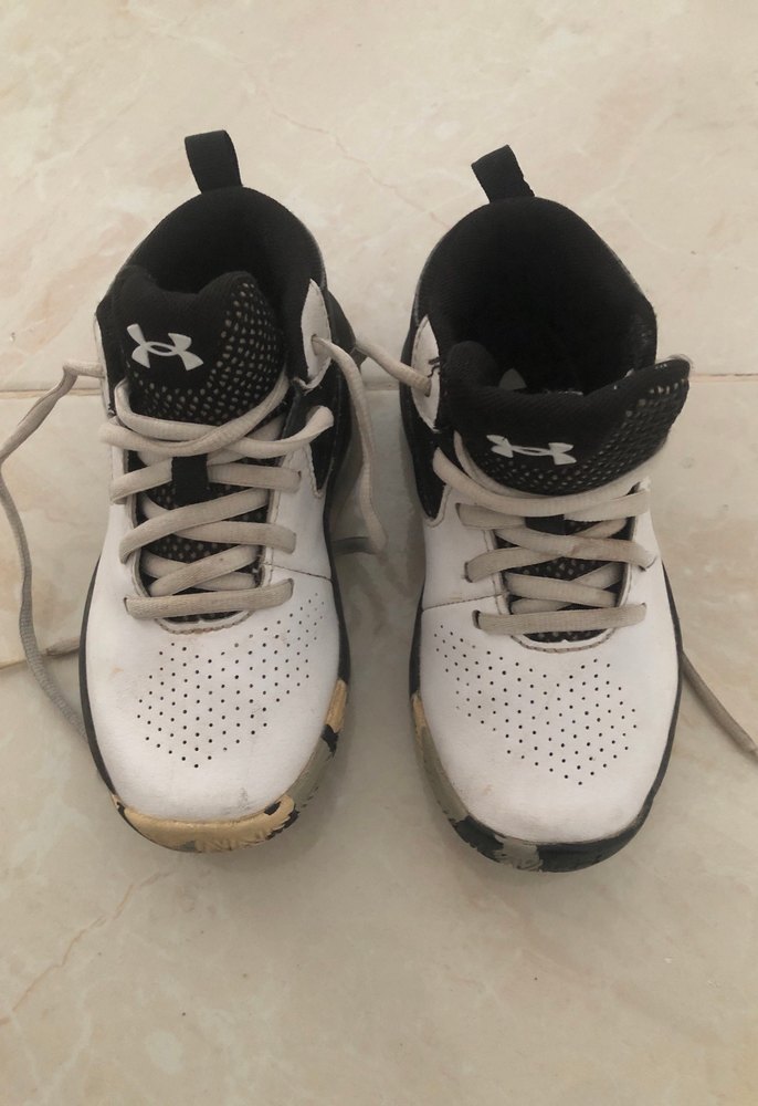 Under Armour beyaz ve gri basketbol ayakkabısı, kauçuk taban ve bağcıklı tasarıma sahip, spor ve sokak stili için uygun. Küçüldüğü için satışda ürün sorunsuzdur 28.5 dur