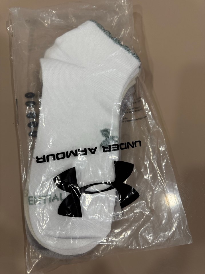 Under Armour markalı beyaz erkek spor çorapları, gri baskılı logo ve normal midi uzunluğa sahiptir.