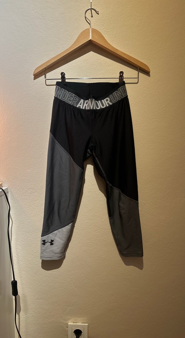Under Armour marka, gri ve siyah renk bloklu, rahat bel bantlı, spor ve günlük kullanıma uygun dar kesim tayt. ♀️uzunluk 70 cm