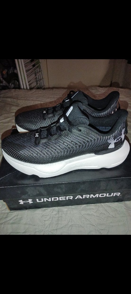 Siyah Under Armour erkek spor ayakkabısı, bağcıklı ve kauçuk tabanlıdır. Spor ve sokak stili için uygundur. Rahat ve şık bir tercihtir. 44 numaradır,43 giyenler için uygundur,bu modelde kalıp bir numara küçüktür.