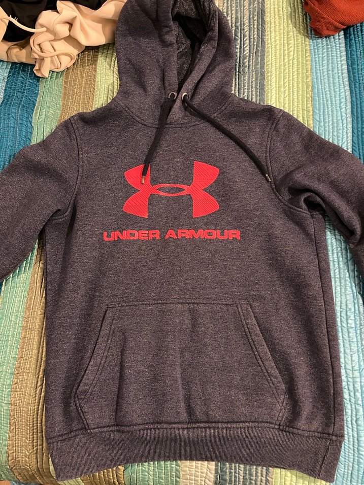 Herhangi bir kusuru yoktur .Under Armour markalı, kapüşonlu, grirenkli, fermuarlı ön cepli, rahat kesim erkek sweatshirt. Spor ve günlük kullanıma uygun yumuşak ve sıcak kumaş.