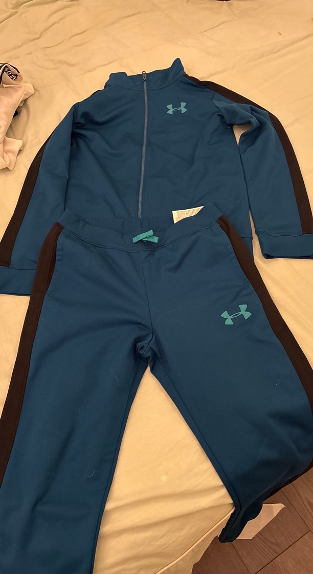 Erkek çocuklar için fitted kesim, koyu mavi renkli ve siyah yan şeritli, yumuşak ve sıcak kumaştan fermuarlı eşofman takımı. Notch yaka detayıyla sokak stiline uygun rahatlık sunar. ♂️under armour marka tertemiz
