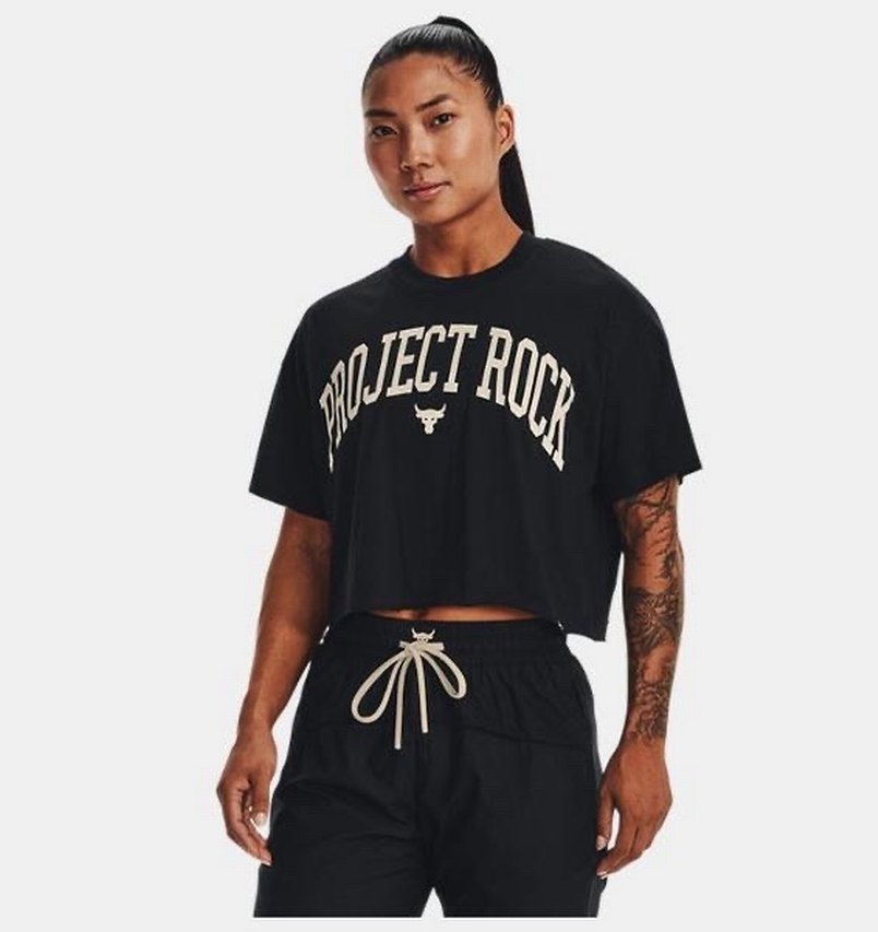Under Armour marka, Project Rock serisi, crop, spor tee. Orijinal ürün, kod ve etiket görsellerine yer verildi. Ölçüleri eklendi. Temiz ve hatasız. #underarmour #spor #fitness #crop #pilates #bodybuilding #crossfit #rock #projecrock