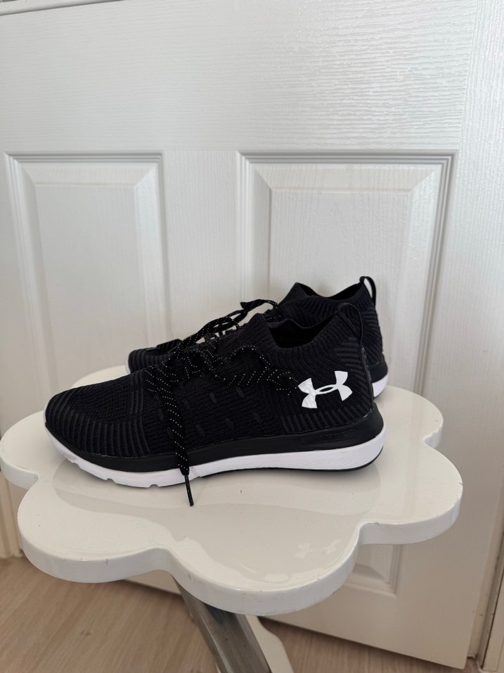 Under Armour marka siyah erkek spor ayakkabısı, bağcıklı ve rahat kauçuk tabanlıdır, sokak stili için uygundur.