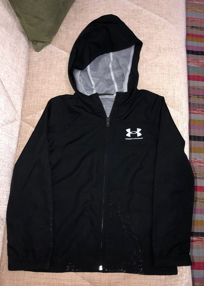 Orjinal Under Armour marka kaliteli üründür. Orjinal fiyatına bakın lütfen. Spor kumaş. Mevsimlik ceket olarak kullanılır. Çok az kullanıldı. Alt kısmında bir boya lekesi var ince fotoğrafta görünüyor başka kusuru yok. Alıcılar için daha detaylı çekim yapabilirim. Fermuarlı. 8-9 yaş.