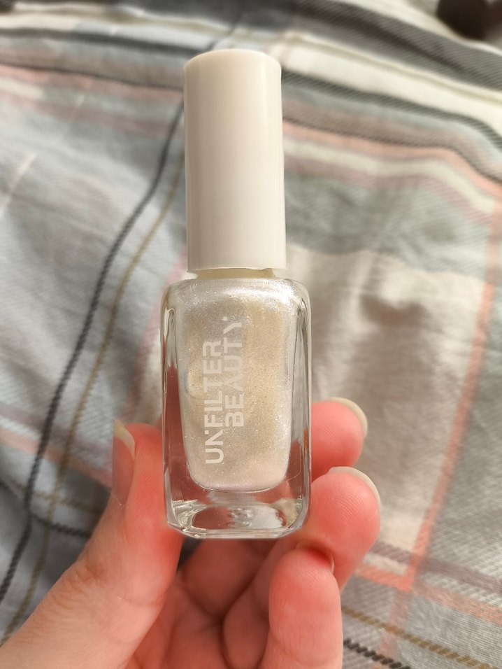 Unfilter Beauty markasına ait, hafif ışıltılı beyaz renkte oje. Şeffaf şişede beyaz kapaklı tasarım. 1 kere düğünde kullandım yeni gibi