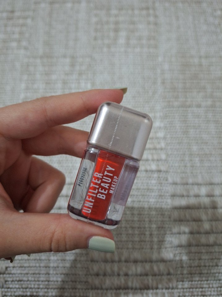 Unfilter Beauty markasına ait kırmızı renkte, gri kapaklı küçük ve taşınabilir ruj. Canlı renk sunar.