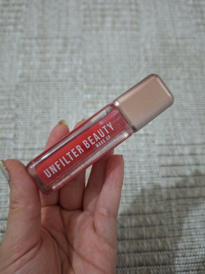 Unfilter Beauty markasına ait pastel kırmızı renkte, canlı ve yumuşak dokulu ruj. Şeffaf dikdörtgen kutuda, bej kapaklı.
