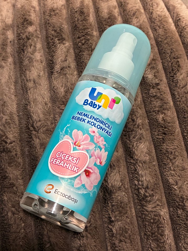 Uni Baby nemlendirici bebek kolonyası, çiçeksi ferahlık sunar. 150 ml sprey şişede, kullanımı kolaydır.