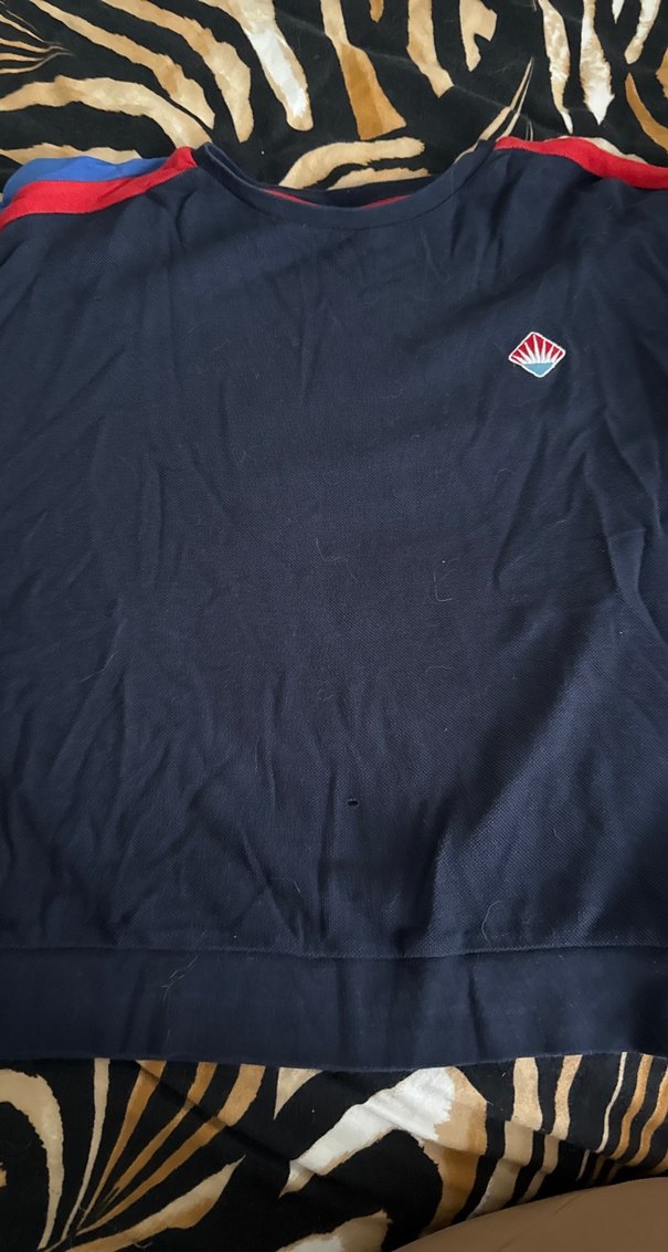 lacivert tişört, yuvarlak yaka, kısa kollu ve bol kesimdir. Düğme detaylı ve sentetik kumaştan yapılmıştır, günlük kullanıma uygundur. Bahçeşehir koleji. Çok minik bir delik var